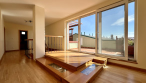 •3. poschodie: vstupná chodba, šatník, kuchyňa s balkónom, priestranná obývačka, samostatné WC, schodisko • 4. poschodie: 2 izby (jedna s balkónom), šatník, galéria s výstupom na veľkú terasu